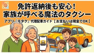 北九州で免許返納後の移動手段にお悩みですか?地元の第一交通を呼べるアプリ「モタク」なら、スマホが苦手な親御さんの代わりに家族がタクシーを手配できます。お支払いはいつも通り現金でOKなので安心。家族による代理配車の方法を、IT初心者さん向けにやさしく解説します。